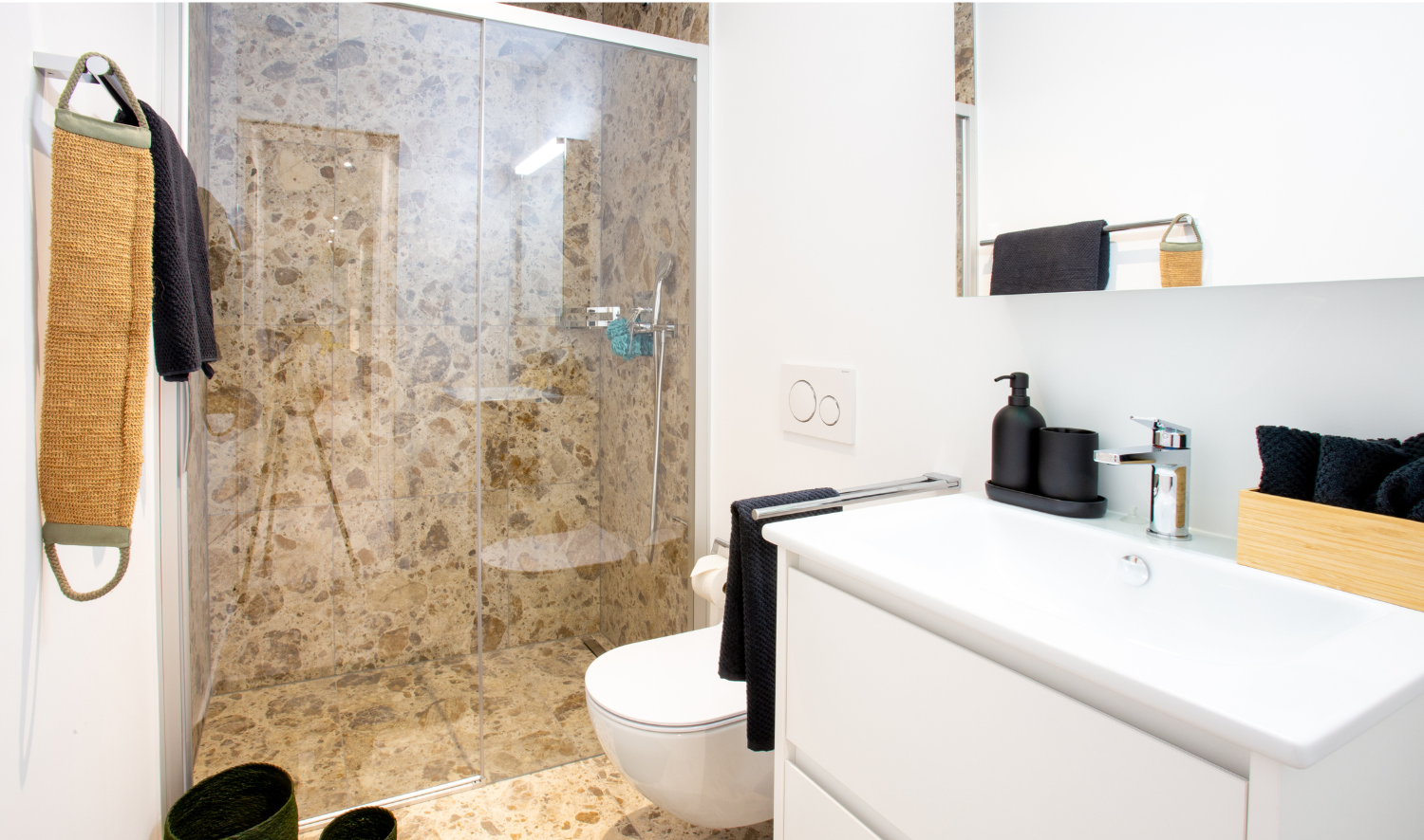 ✔ Camera da letto accogliente e bagno elegante con doccia.