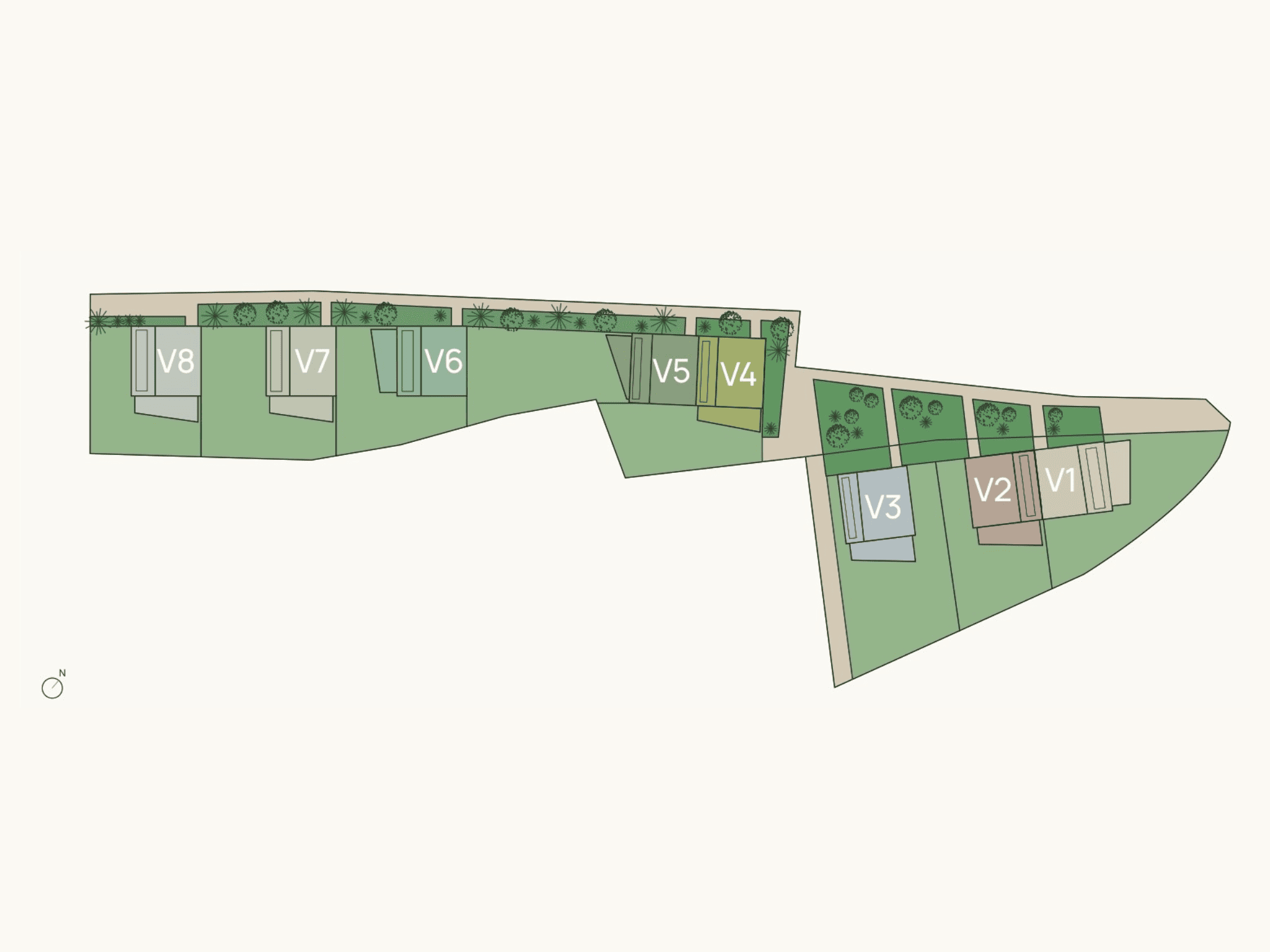 Il mappale sul quale si sviluppa il progetto delle 8 villette è stato ispiratore per l'attenzione al paesaggio e alle aree verdi da vivere in comune.