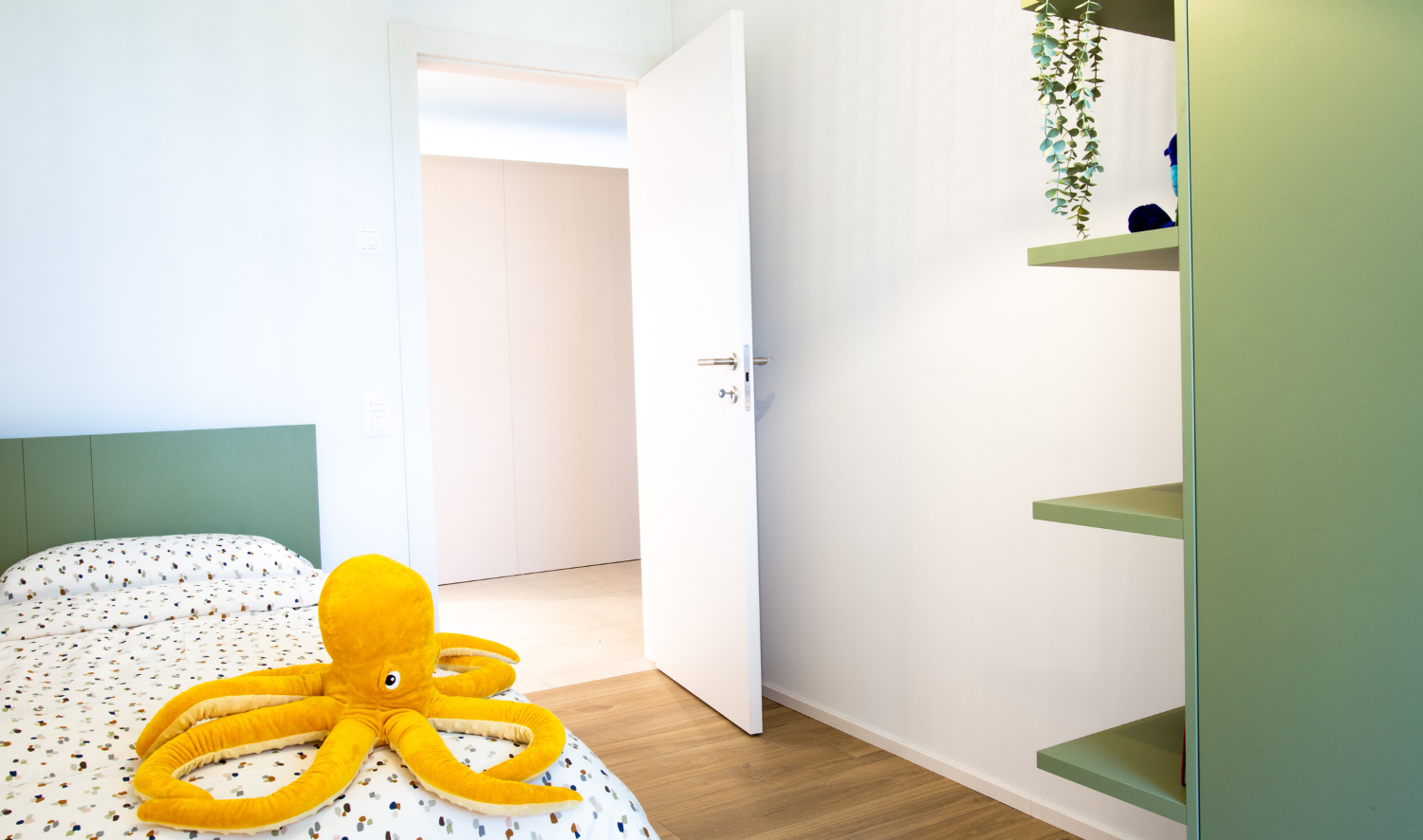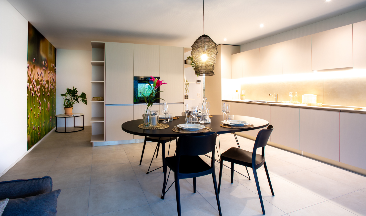 Con 4.5 locali, l'appartamento offre un'ampia e luminosa zona giorno che si armonizza perfettamente con una cucina moderna, rendendolo ideale per intrattenere ospiti, godersi momenti di relax o per lavorare. La camera matrimoniale garantisce uno spazio privato e confortevole, mentre le due camere singole possono essere anche trasformate in un ufficio, una grande cabina armadio o sala hobbies.